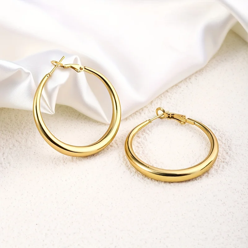 EVISPOL Elegant Golden Hoop Earrings for Women Thick Design Lightweight & Comfortable Perfect for Daily Wear or Parties Jewelry