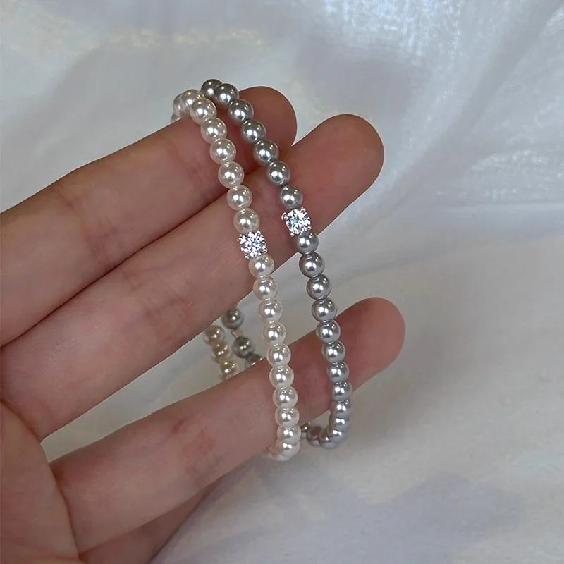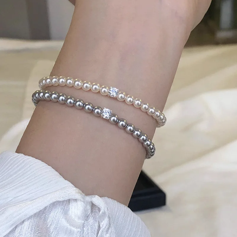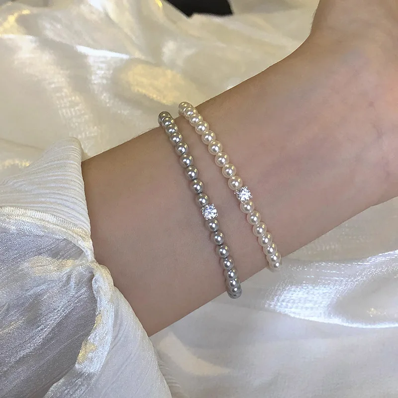 French Vintage Single Zircon Pearl Bracelet