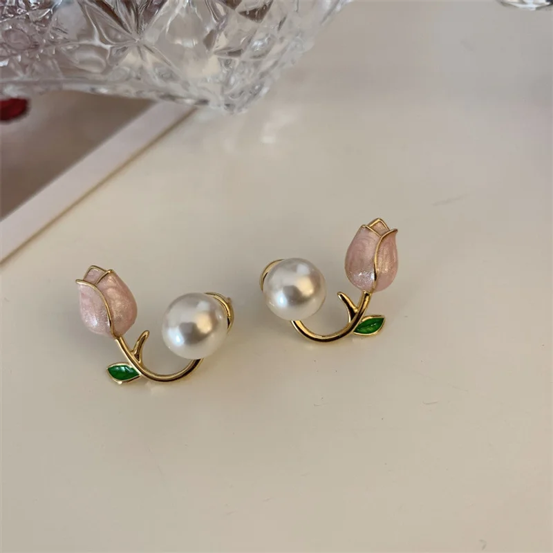 New Design Elegant Imitation Pearl Tulip Stud Earrings